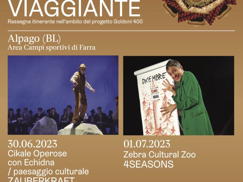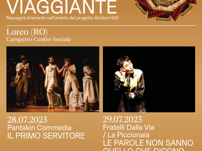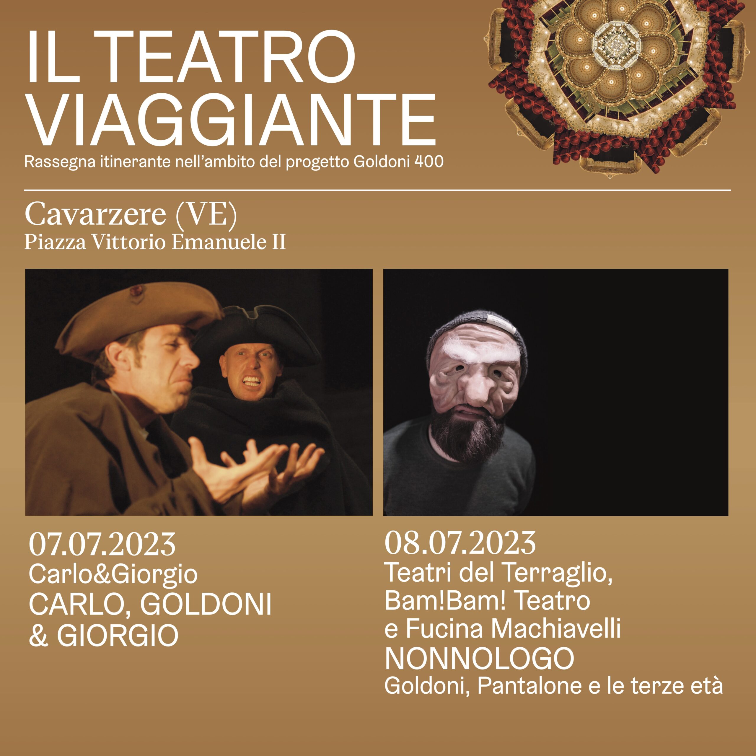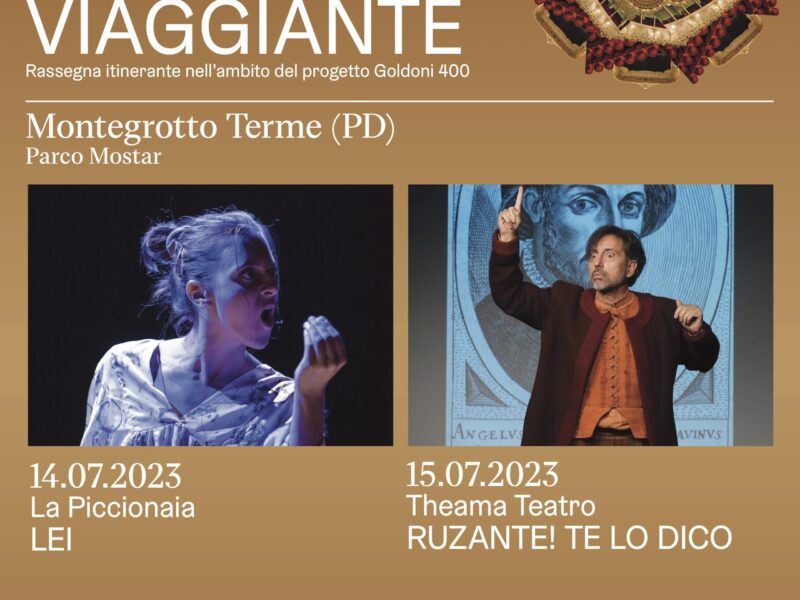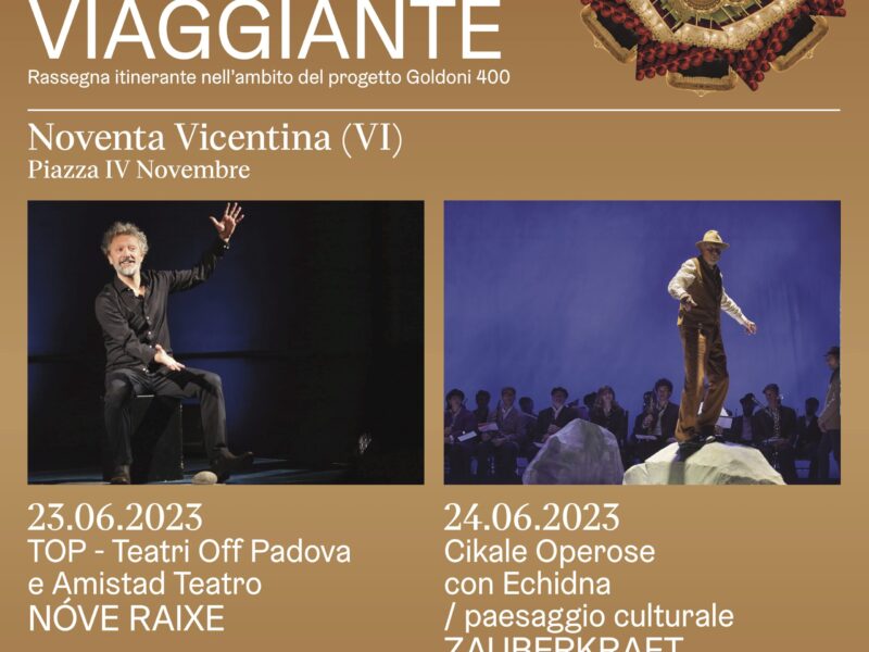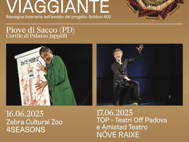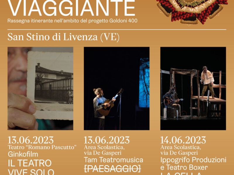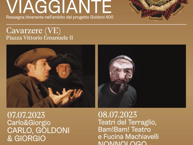 A otto mesi dall’inizio delle celebrazioni per i 400 anni del Teatro Goldoni di Venezia, il progetto “Goldoni 400” si arricchisce con Il Teatro Viaggiante. Un cartellone teatrale diffuso che, nell’ambito del programma triennale promosso dal Teatro Stabile del Veneto – Teatro Nazionale assieme al Circuito Multidisciplinare Regionale Arteven, al Comune di Venezia e alla Regione del Veneto, toccherà dal 13 giugno al 29 luglio 14 comuni del Veneto di tutte e 7 le province, per un totale di 28 spettacoli.