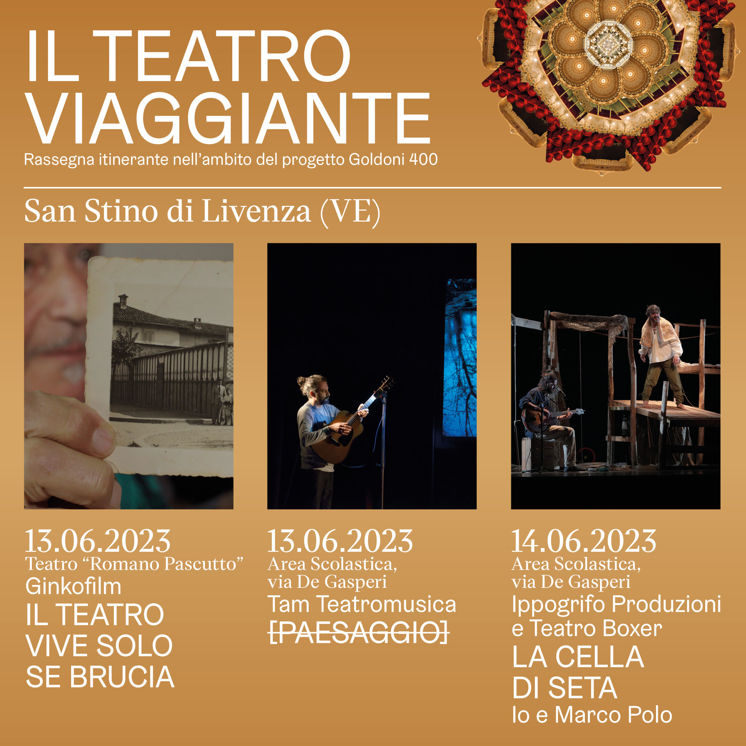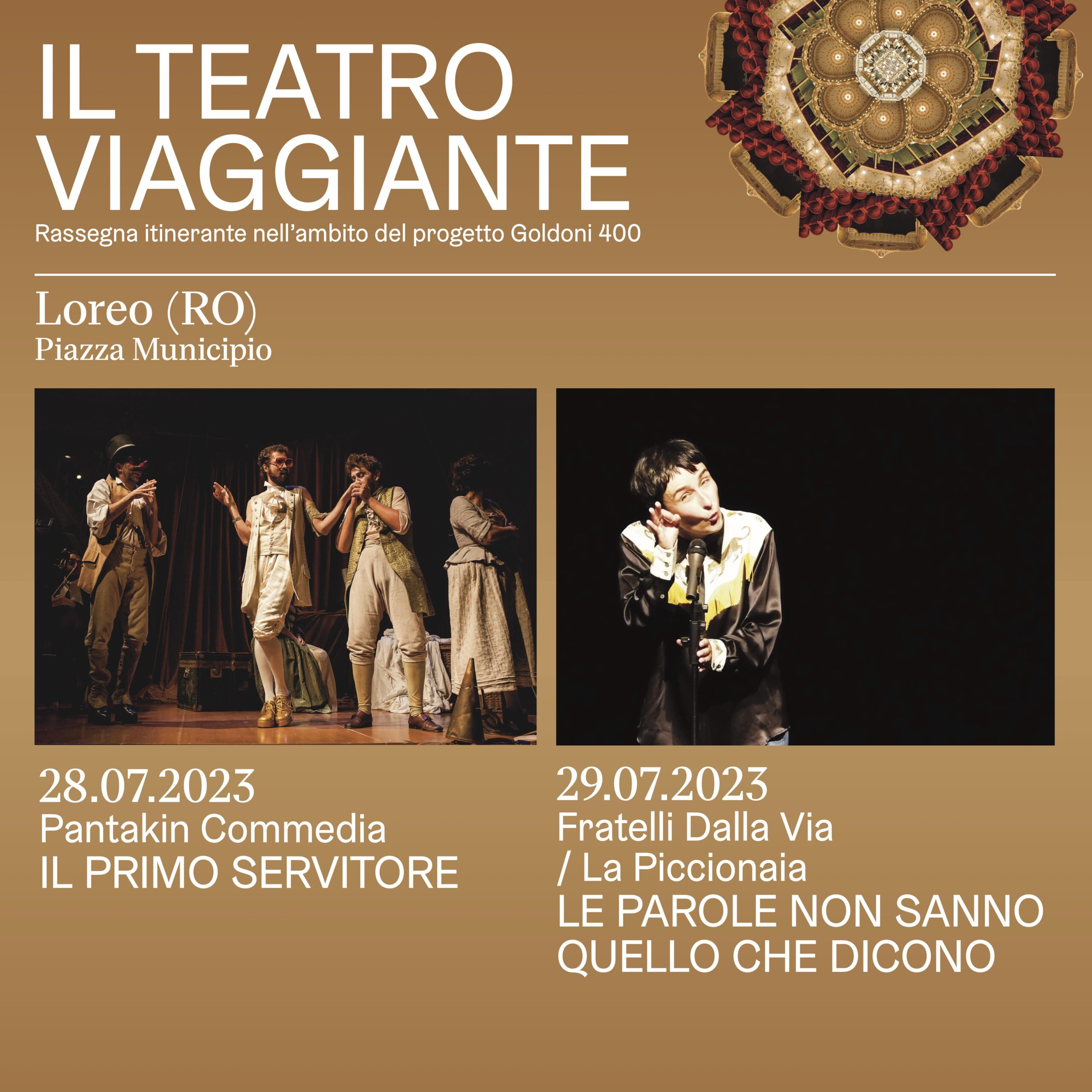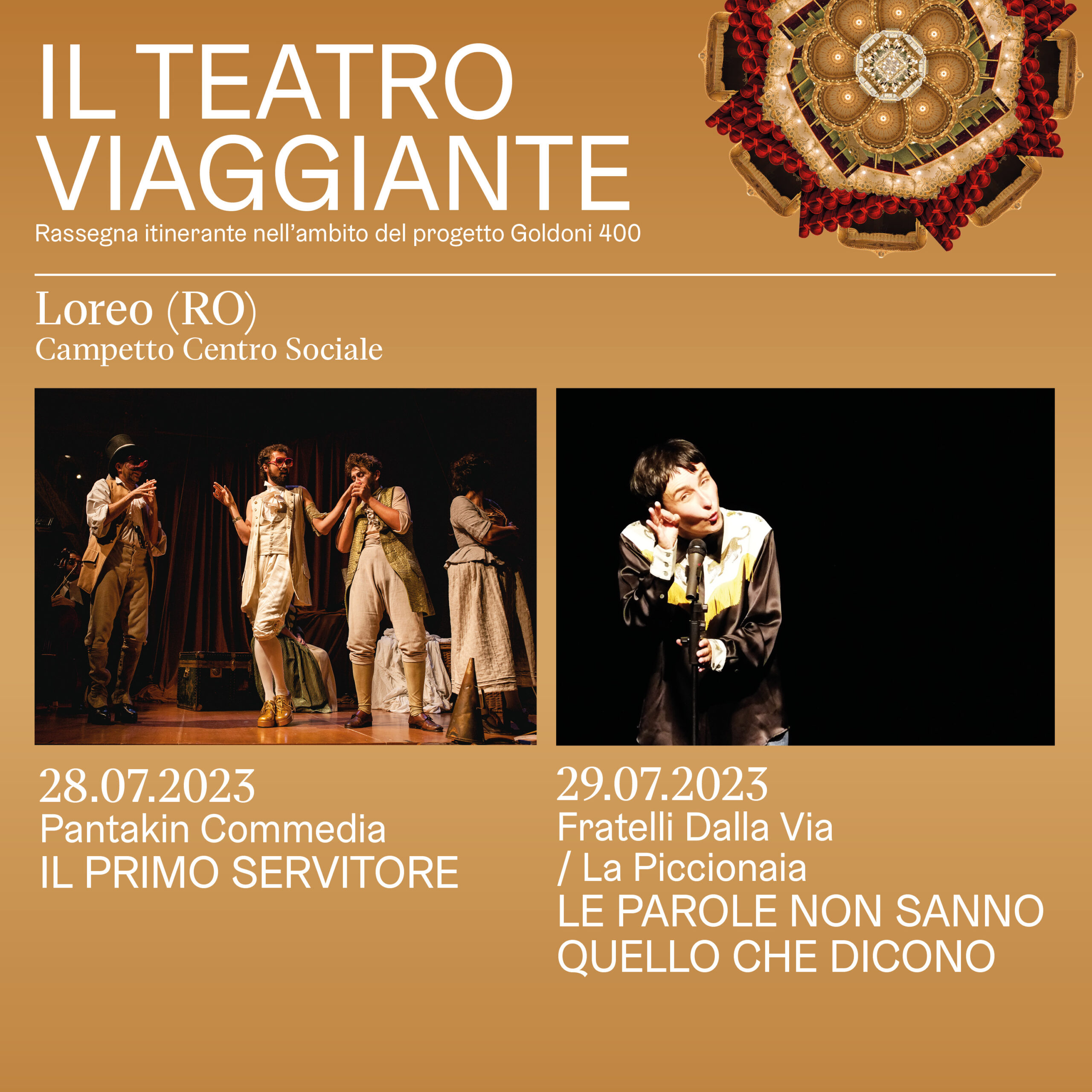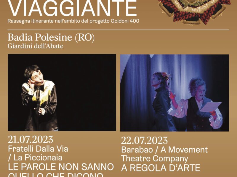 A otto mesi dall’inizio delle celebrazioni per i 400 anni del Teatro Goldoni di Venezia, il progetto “Goldoni 400” si arricchisce con Il Teatro Viaggiante. Un cartellone teatrale diffuso che, nell’ambito del programma triennale promosso dal Teatro Stabile del Veneto – Teatro Nazionale assieme al Circuito Multidisciplinare Regionale Arteven, al Comune di Venezia e alla Regione del Veneto, toccherà dal 13 giugno al 29 luglio 14 comuni del Veneto di tutte e 7 le province, per un totale di 28 spettacoli.