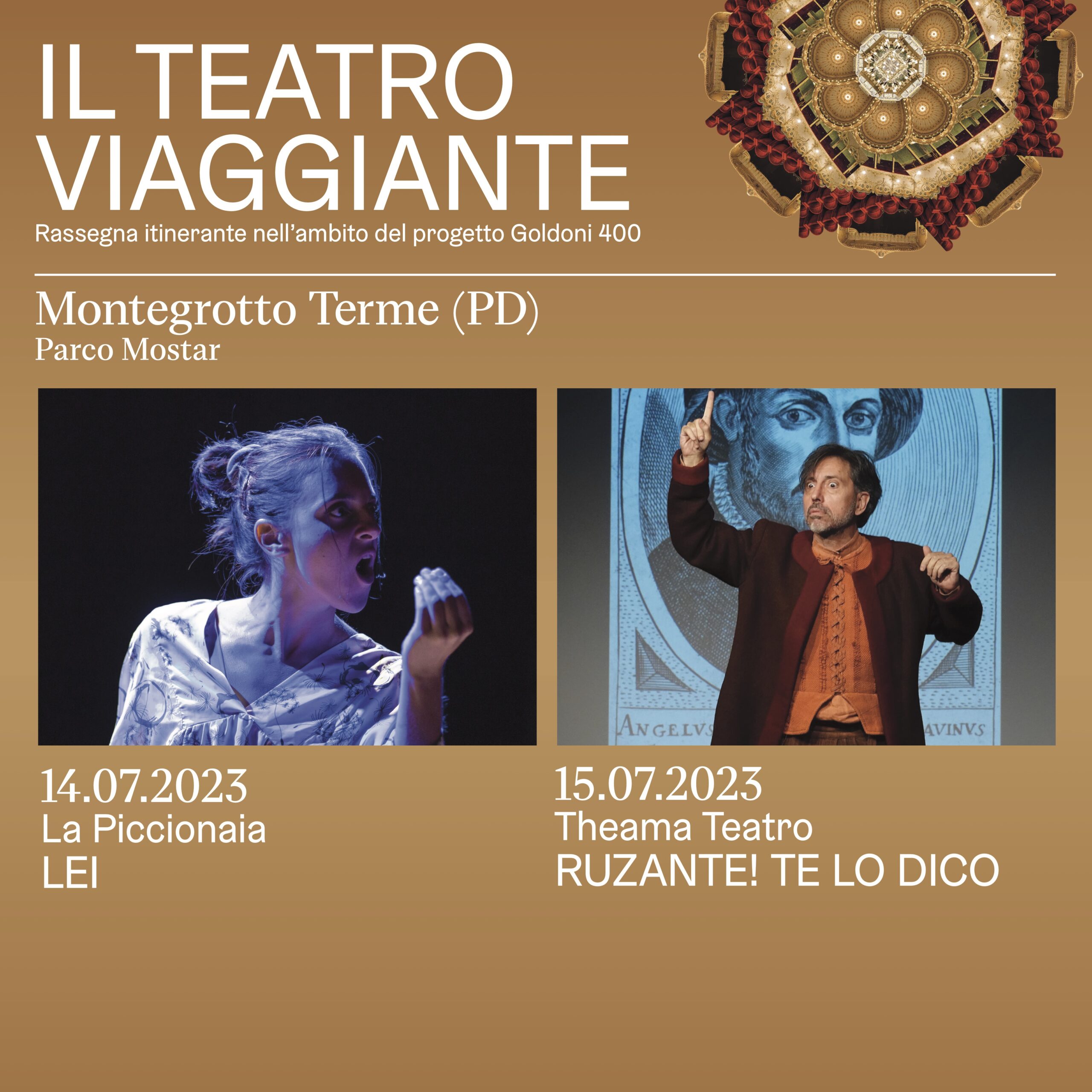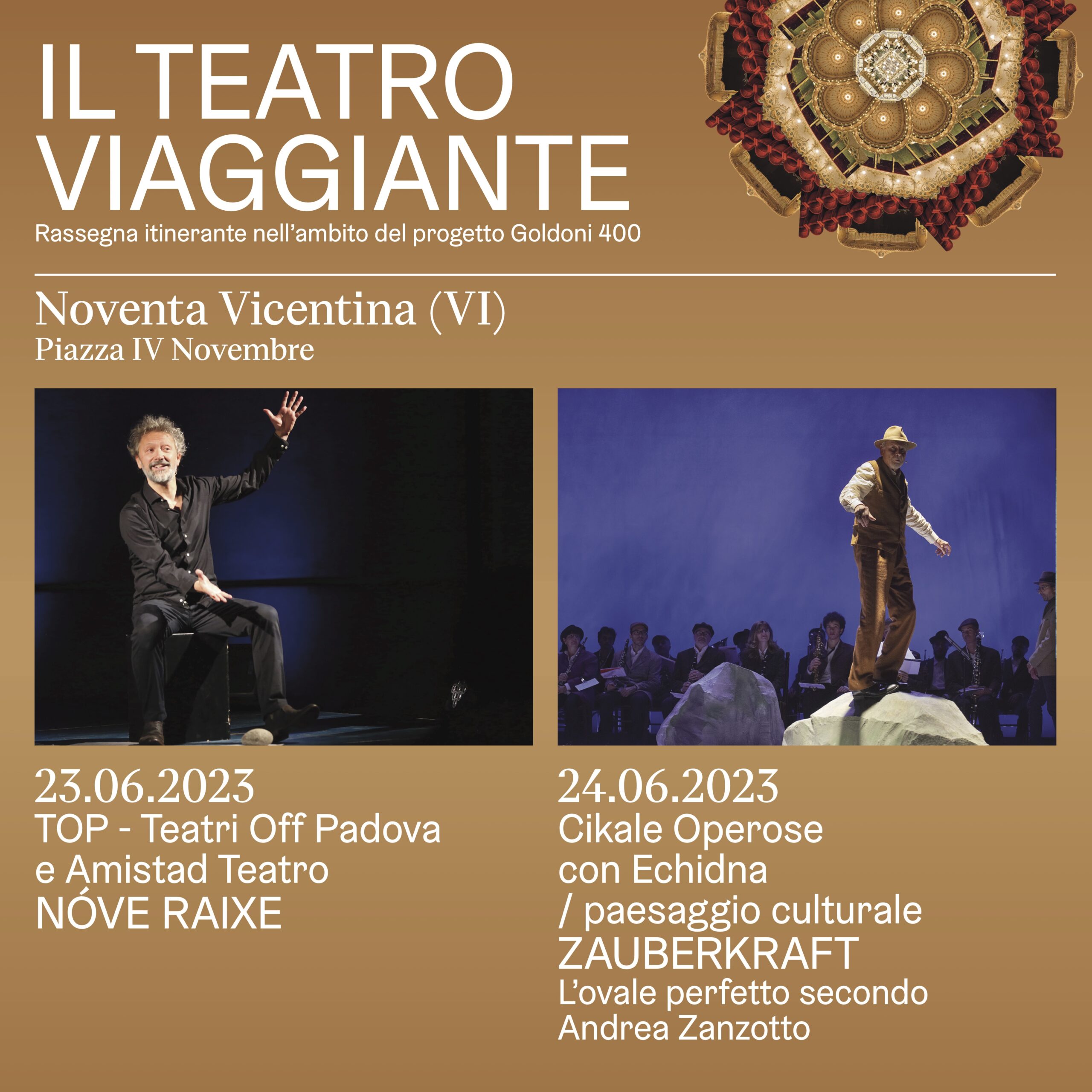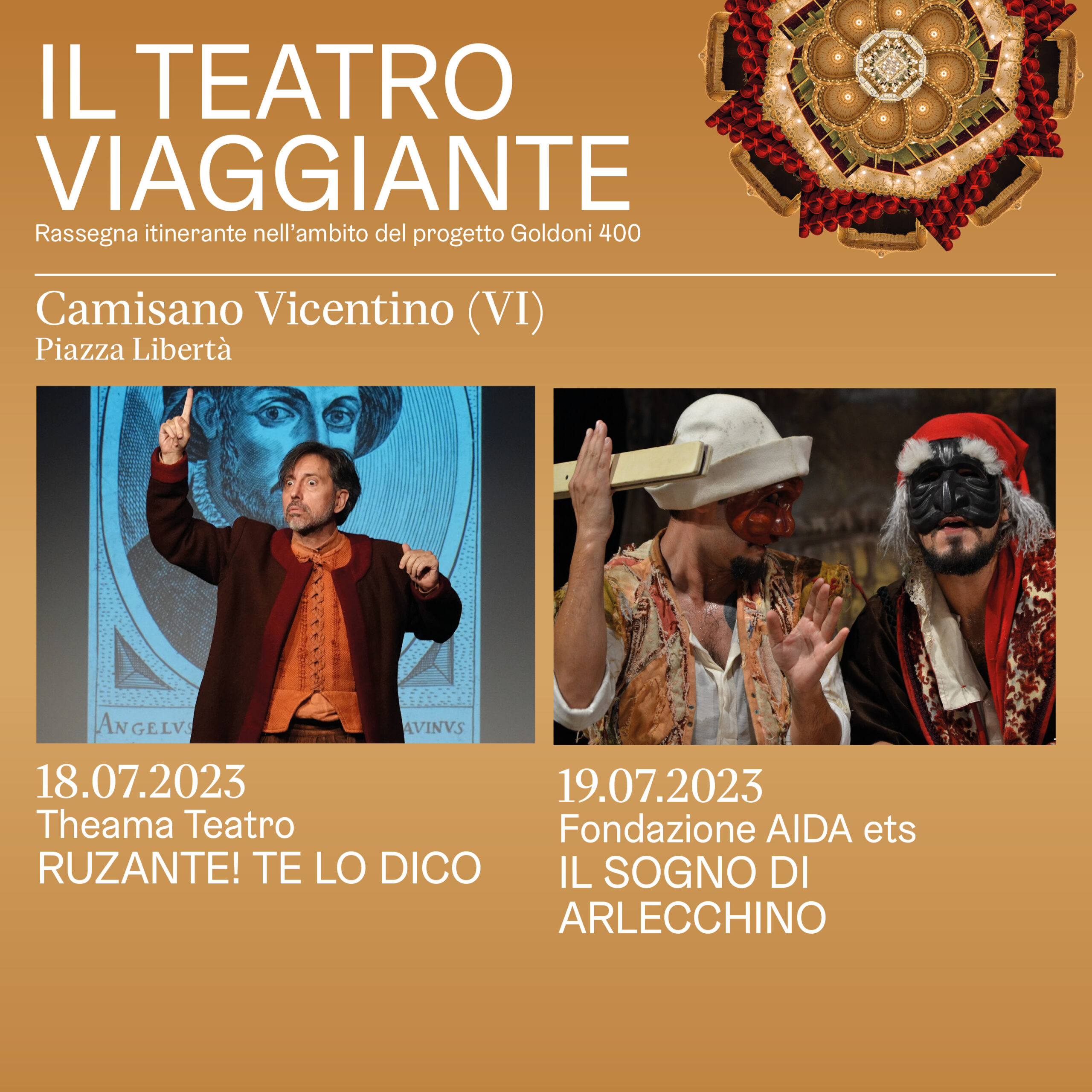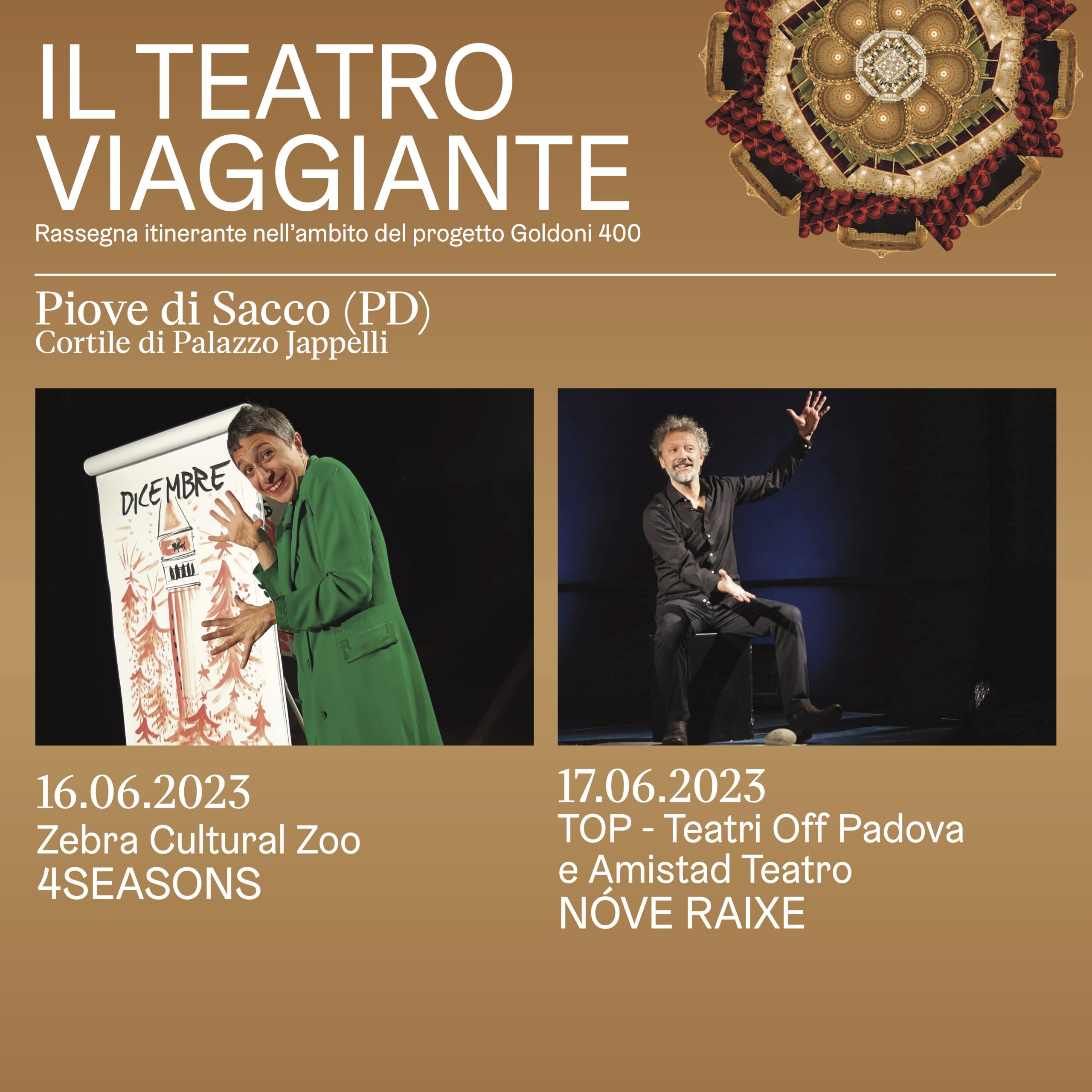 A otto mesi dall’inizio delle celebrazioni per i 400 anni del Teatro Goldoni di Venezia, il progetto “Goldoni 400” si arricchisce con Il Teatro Viaggiante. Un cartellone teatrale diffuso che, nell’ambito del programma triennale promosso dal Teatro Stabile del Veneto – Teatro Nazionale assieme al Circuito Multidisciplinare Regionale Arteven, al Comune di Venezia e alla Regione del Veneto, toccherà dal 13 giugno al 29 luglio 14 comuni del Veneto di tutte e 7 le province, per un totale di 28 spettacoli.